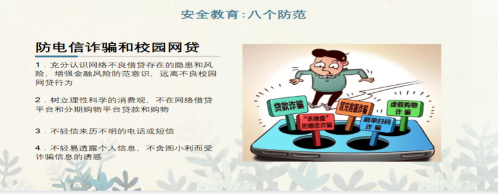 另外,对在校外的实习生群体采取线上集中学习,提升安全防范能力。学院针对实习生,各实习点学生将防范电信诈骗作为本次安全教育活动的重点召开了线上的安全教育主题班会,以班会、年级会等会议规模集中学习了防电信诈骗的相关知识,增强我班学生防范意识和化解风险的能力,对学校的安全稳定起到积极的作用,为防范和抵制非法集资活动,加强群众宣传力度,提高社会公众风险意识及防范能力。