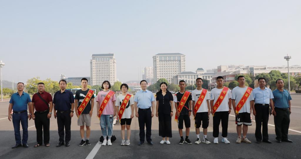 武装部部长张阳春介绍了2022年秋季大学生征兵工作开展情况,宣读了应征入伍大学生名单并向同学们表示祝贺。党委学生工作部部长张湘明希望应征入伍大学生安心服役,苦练本领,百炼成钢。8名应征入伍大学生依次作表态发言,大家表示,将珍惜军旅,刻苦训练,不负大学的重托,无愧于青春岁月。