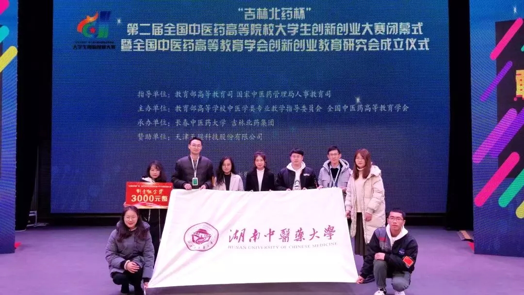 在第二届全国中医药高等院校大学生创新创业大赛中斩金夺银