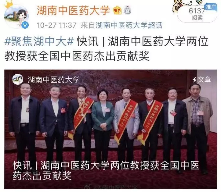 10月25日,我校两位教授获全国中医药杰出贡献奖。