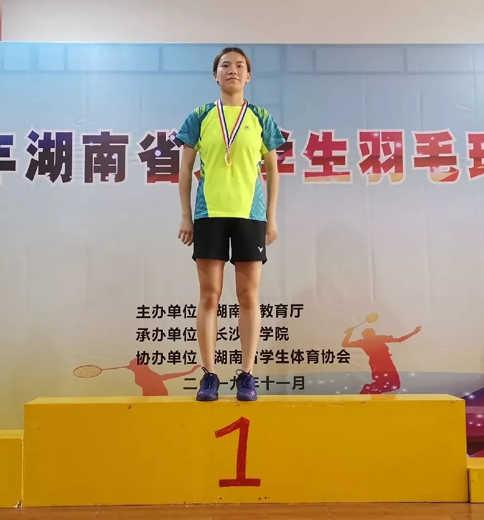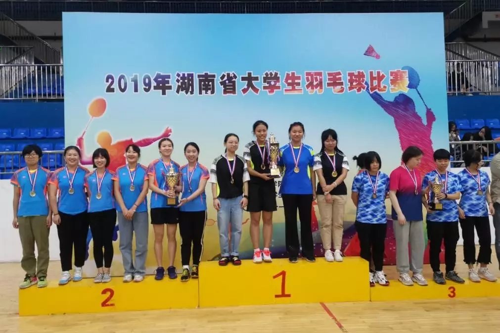 我校羽毛球队在2019年湖南省大学生羽毛球比赛中创历史首金。