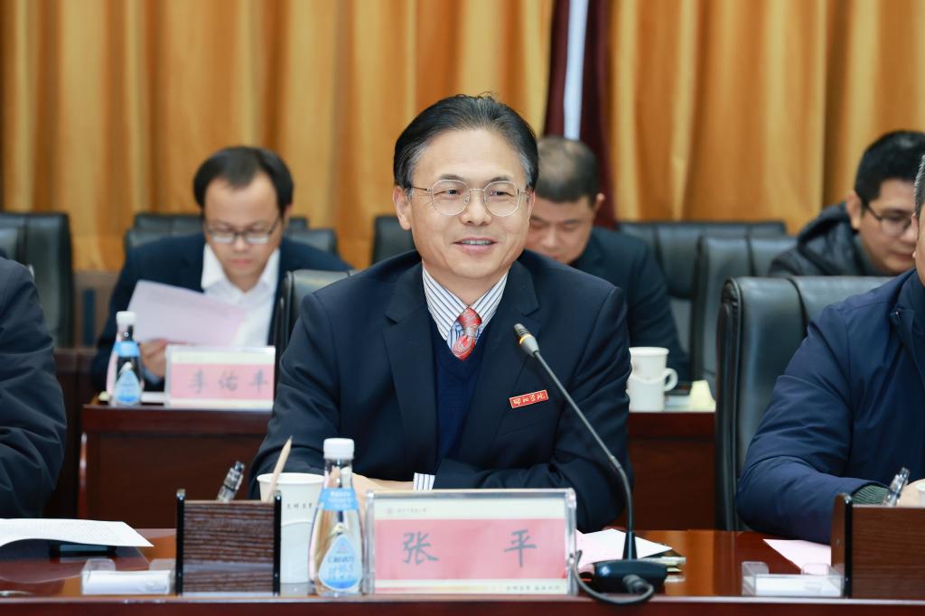喻嵘代表学校向张平一行的来访表示热烈欢迎,并介绍我校在学科建设与人才培养、科技创新与社会服务、开放办学与国际交流等方面的基本情况。