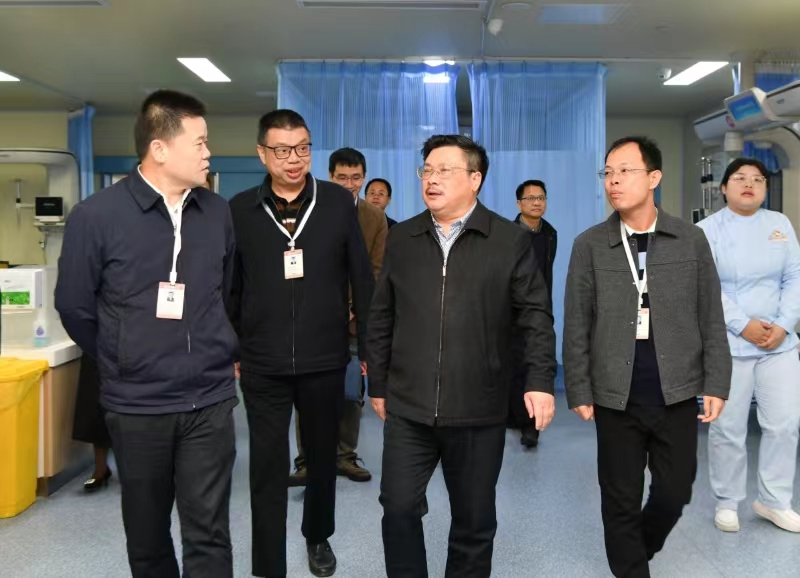 会前,戴爱国一行实地查看了浏阳市中医医院急诊科、针灸·推拿·疼痛·康复中心、骨伤科、中医经典科、教学基地等。