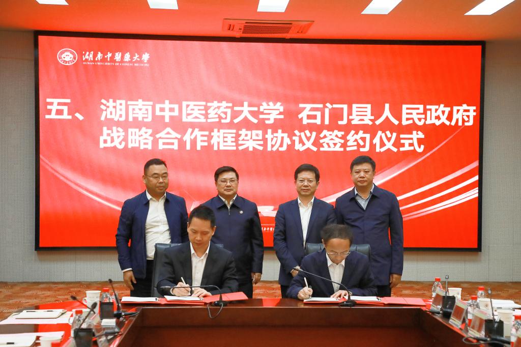 石门县卫健局、林业局、教育局、人社局、中医医院等,我校党政办公室、发展规划与医院管理处、教务处、药学院、人文与管理学院(湘药产业发展研究院)、第一附属医院、第二附属医院等相关负责人参加签约仪式。