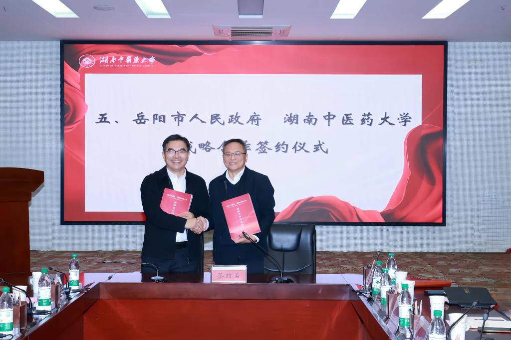 易刚强指出,岳阳中医药资源丰富,文化底蕴深厚,我校与岳阳市的合作天时、地利、人和。岳阳市委、市政府高度重视中医药工作,国家中医药传承创新发展试验区的获批建设为岳阳带来良好发展机遇;坐拥长江流域、洞庭湖区和联通四方的区域优势,为岳阳中药材原材料和产品的商贸流通提供了便利条件;自2009年,岳阳市中医院承担我校临床本科班教学以来,双方在人才培养、专科建设等方面建立了坚实的合作基础。