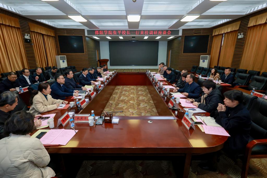 12月5日上午,邵阳学院校长张平一行来校调研交流,我校校长易刚强、副校长喻嵘出席座谈会,会议由喻嵘主持。