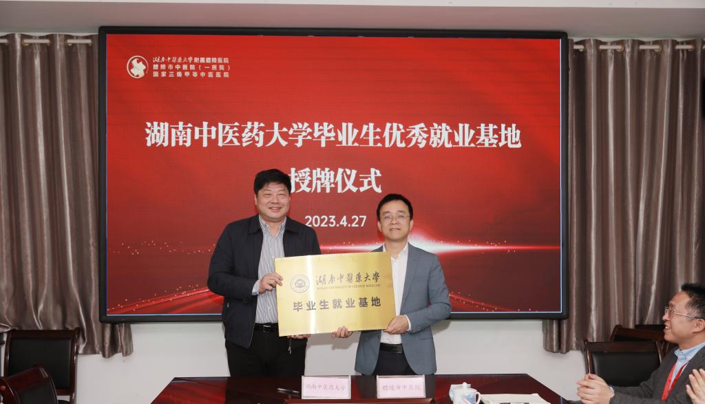 学校与醴陵市中医院签订毕业生就业基地合作协议并进行了授牌。