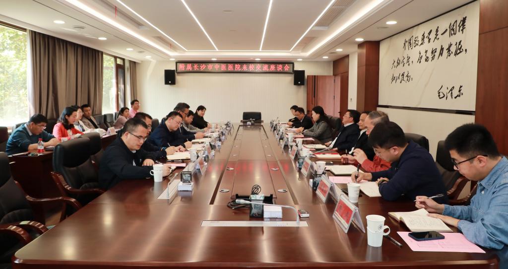 4月11日上午,附属长沙市中医医院来校交流。我校在含浦校区办公楼二楼会议室召开交流座谈会。党委书记戴爱国出席会议并作重要讲话。校长易刚强主持会议并介绍学校基本情况。
