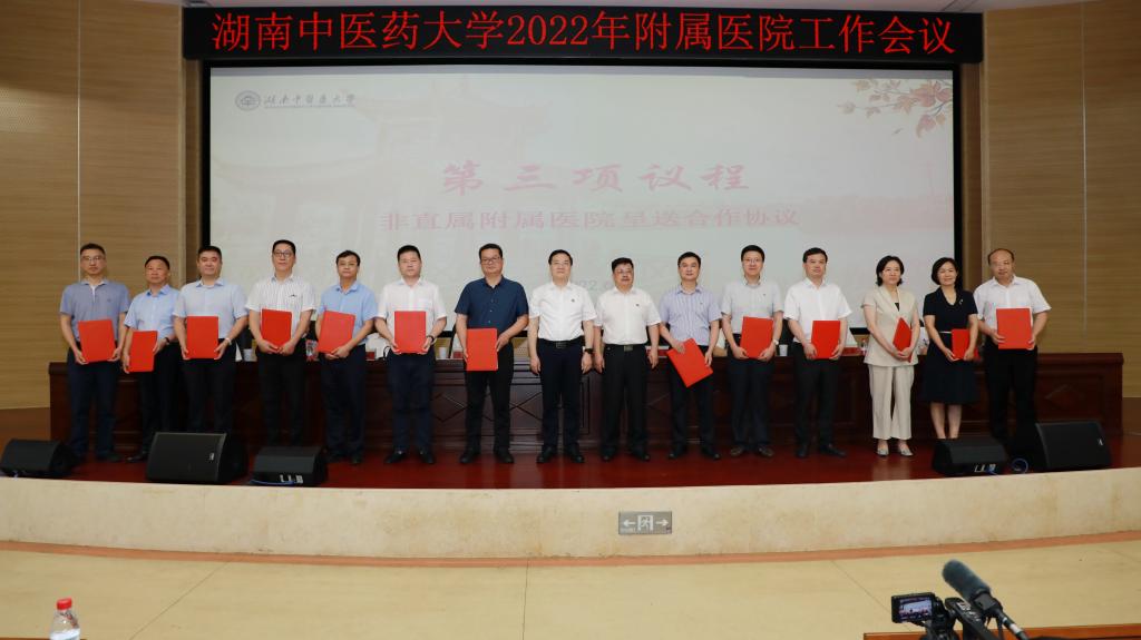 我校第一附属医院党委书记程博、附属人民医院院长周绍明、附属衡阳医院院长傅友生分别发言,分享了医院工作经验,同时提出了与学校进一步加强合作的愿景。