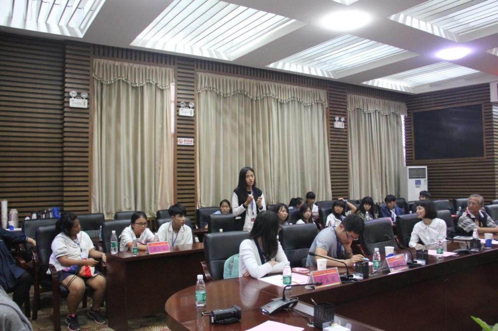 随后,我校在含浦校区行政楼一楼会议室组织召开座谈交流会。台湾团团长陈怜燕一行的台东县政府成员、台湾大武中学师生三十余名客人、湖南省台办副主任罗爱民、台办交流交往处副处长彭开春、党委副书记肖小芹、港澳台办公室、党委统战部、学工部相关负责人、我校曾经赴台交流学生及带队老师及多名台籍学生参与交流座谈。港澳台办公室副主任程华初主持会议。
