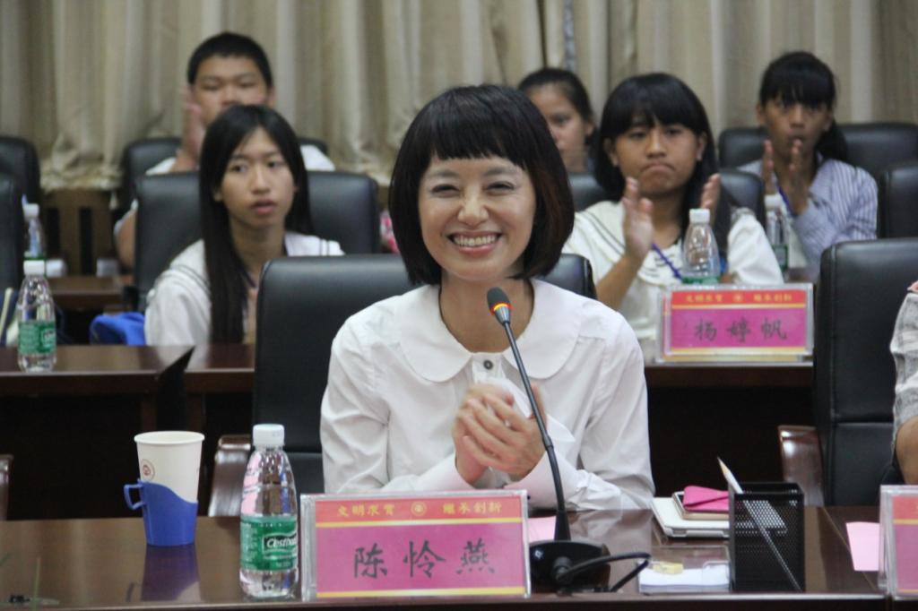 台湾代表团团长陈怜燕向大家简要介绍了台东、台湾大武中学及自身参与系列公益教育项目的概况,并对今后双方在招生、研讨会、药草展示等活动提出初步设想和期盼。