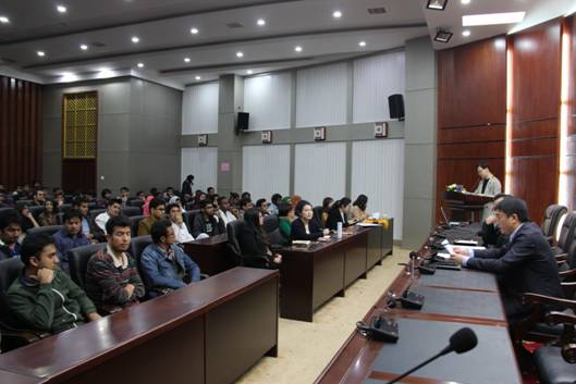 会上,院长李江山宣读了对违反出入境管理法及治安管理处罚法的两名巴基斯坦留学生的处罚决定,并以此告诫其它留学生严格遵守法律法规。