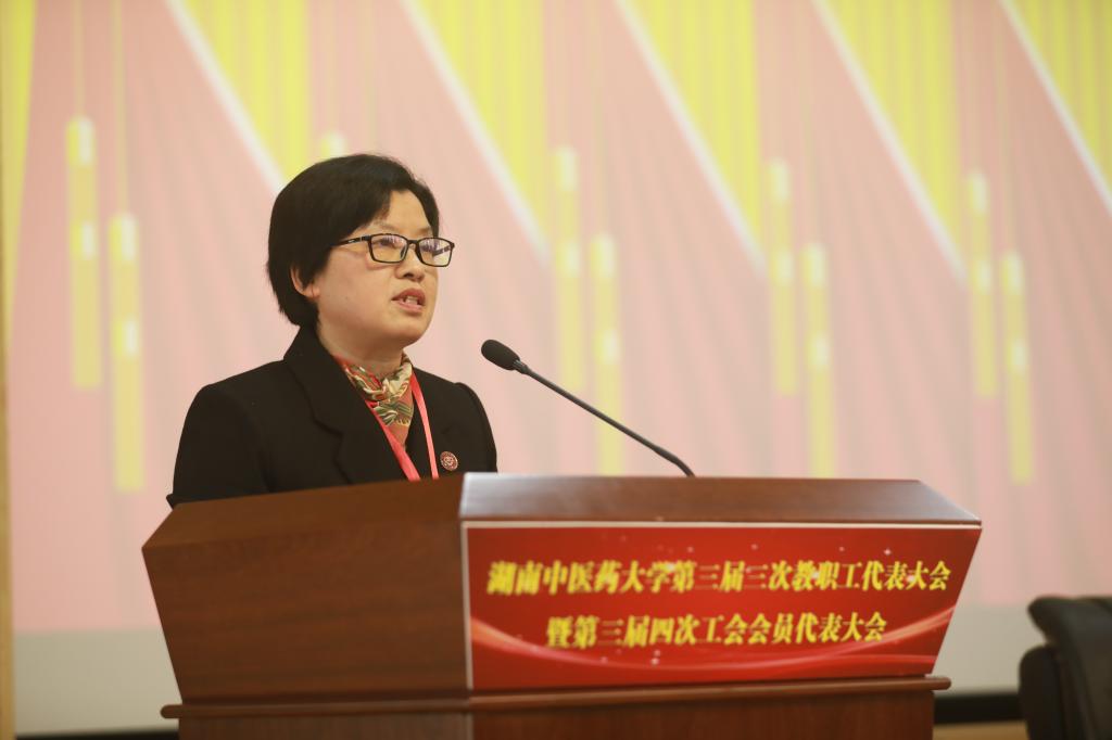 校工会常务副主席李春湘以《凝心聚力踔厉奋发 为建设高水平一流大学贡献工会力量》为题作工会工作报告。她表示,2022年,校工会将深化党史学习教育,强化理论武装;积极搭建平台,动员职工岗位建功立业;维护服务职工,汇聚奋进新征程的磅礴力量;推进工会改革创新,不断提升工会组织的服务质量,以优异的成绩迎接党的二十大胜利召开。