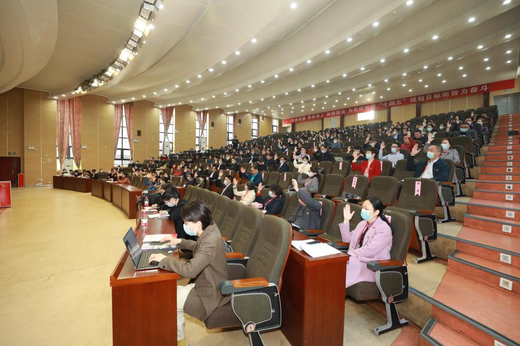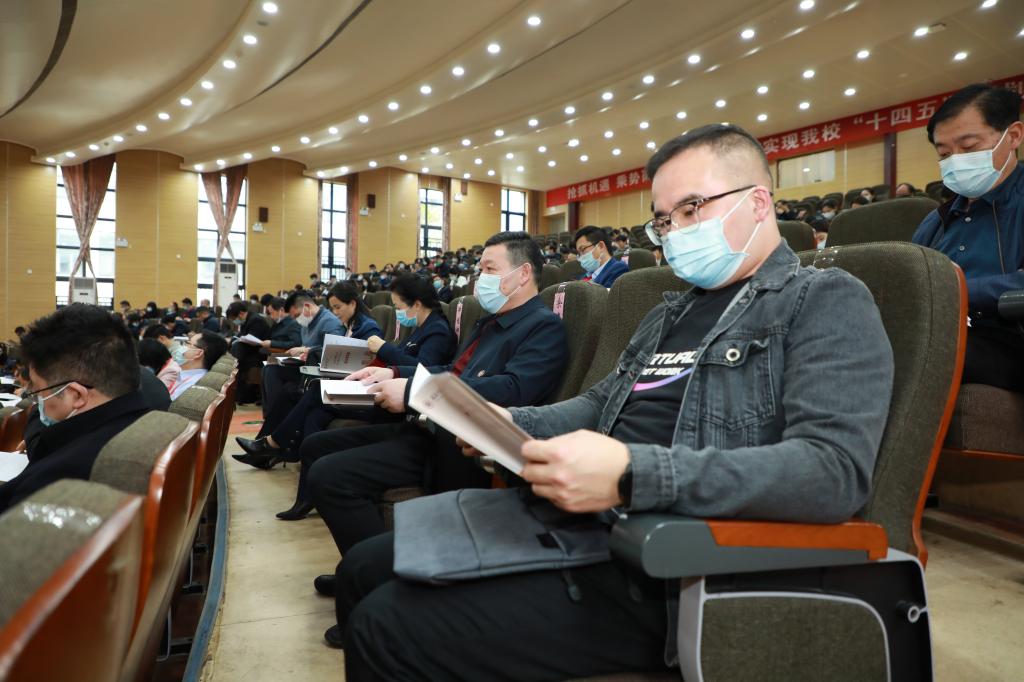 校(院)长戴爱国以《抢抓机遇谋新篇振奋精神向未来》为题作工作报告,全面回顾了2021年学校各项事业的发展情况,明确2022年工作的总体要求,并部署了2022年十大重点工作。
