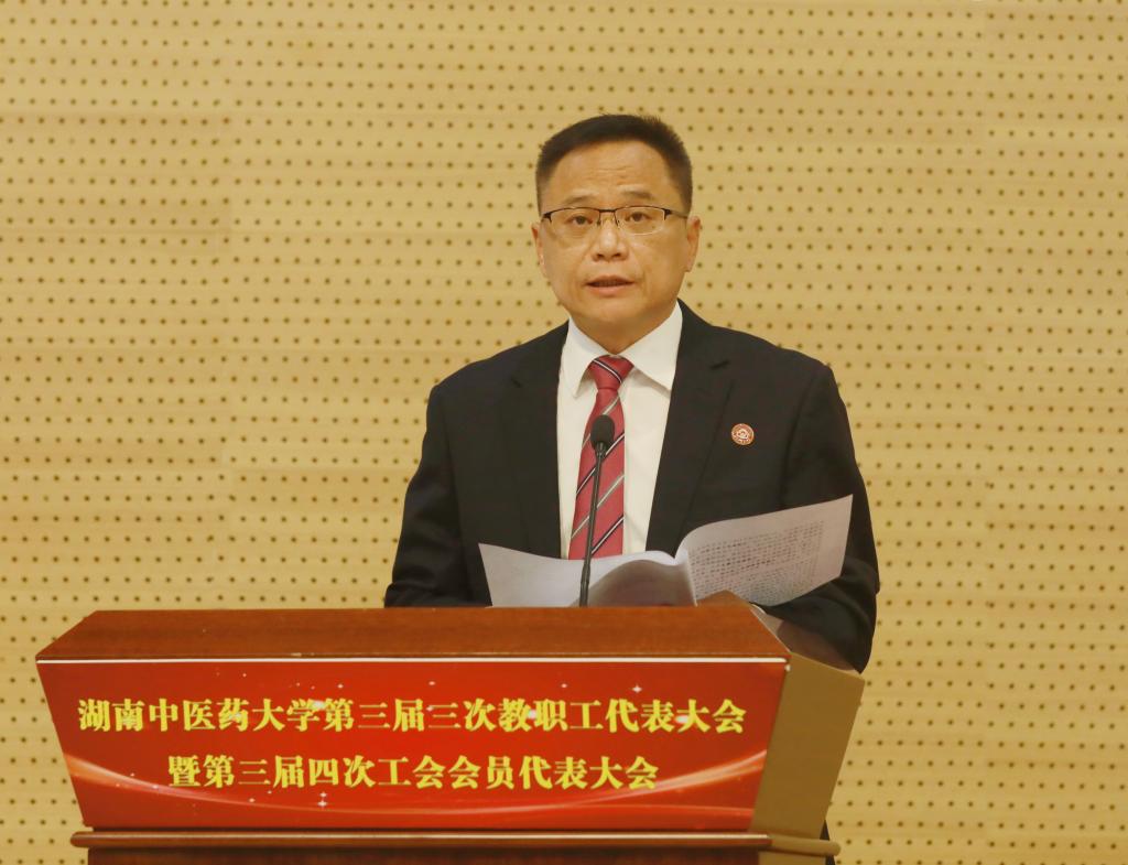 校(院)党委副书记、工会主席易刚强致开幕词。他表示,一年来,在校(院)党委的坚强领导下,全体师生员工协同奋斗,各项事业蓬勃发展,实现了“十四五”良好开局,希望代表们以高度的责任感和主人翁的姿态,认真讨论、审议各项工作报告,踊跃发言、献计献策,努力把本次大会开成一次团结鼓劲的大会、民主务实的大会、继往开来的大会。
