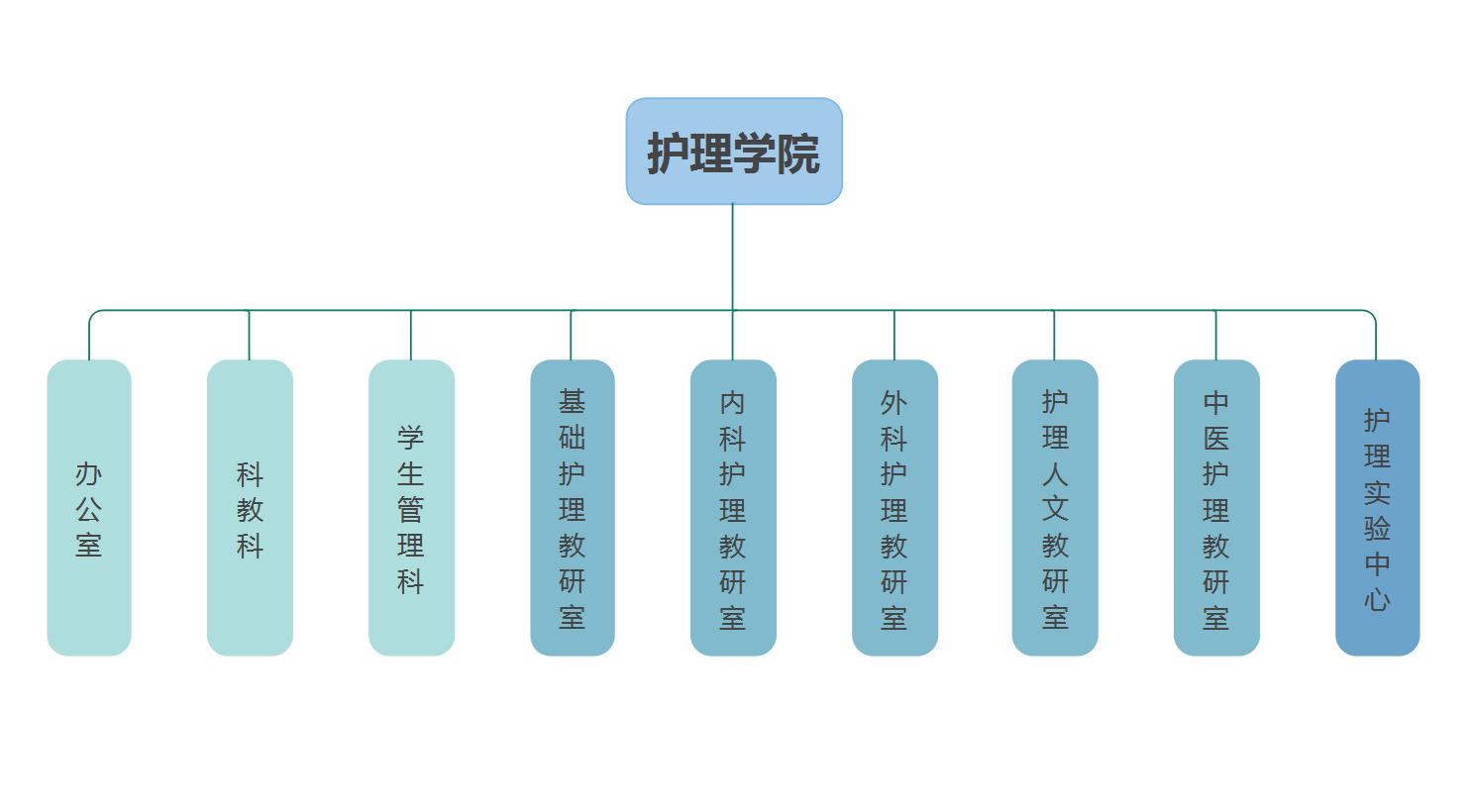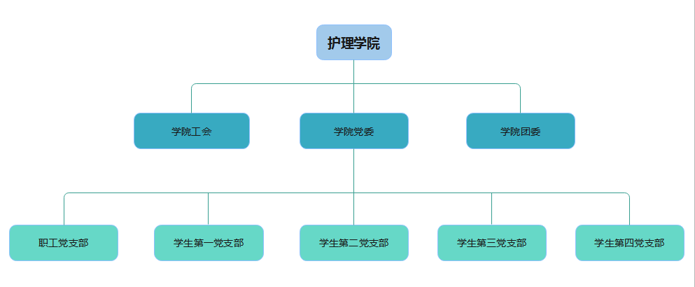 1.实线连接的是护理学院行政管理下的5个教研室;