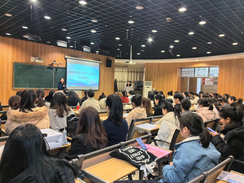 附属第二医院(湖南省中医院)在我校第二办公楼举行了专场招聘会。医院院长王国佐带领导的招聘团队,学院院长陈偶英、副书记吴湘及学生科全体老师,还有2024届毕业生们,共同参与了此次招聘会。