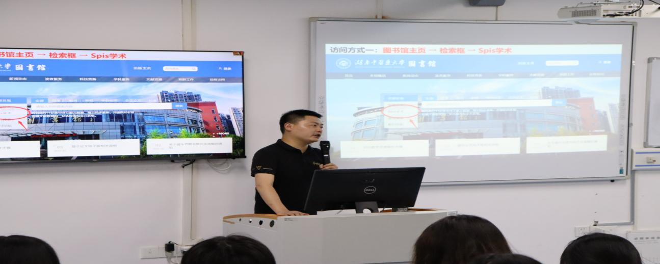 讲座中,湖南纬度信息科技有限公司刘俊老师向学生介绍了学术资源导航数据库的基本功能和特点,包括文献检索、资料整理等。通过实际操作演示和案例分析,向学生展示了如何通过半岛手机版官网登录
