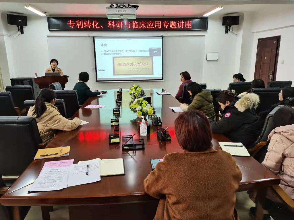 2022年01月13日,由学院和护理学一流学科共同组织的《专利转化、科研与临床应用经验分享》专题讲座在学院会议室举行,主讲嘉宾为附属常德医院副院长潘晓彦教授和中南大学湘雅护理学院博士生导师张静平教授。讲座由副院长蒋小剑教授主持,学院全体教师、研究生及硕士研究生导师参加,并同步进行了线上直播。