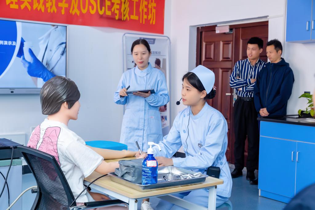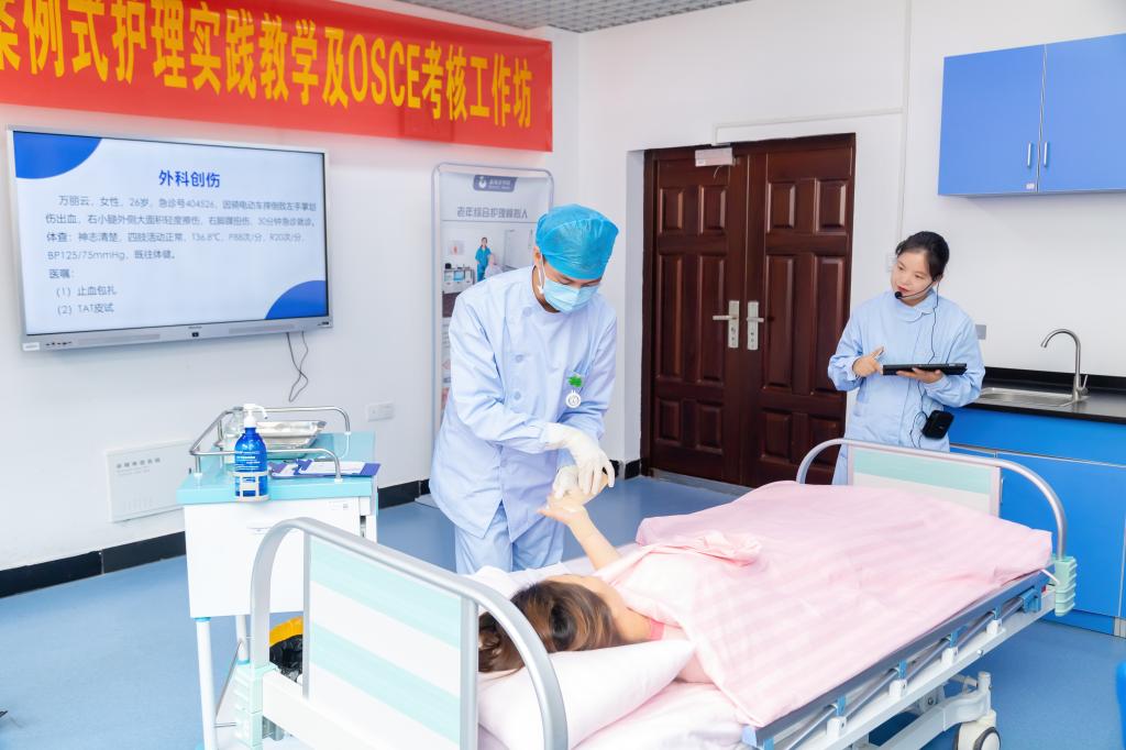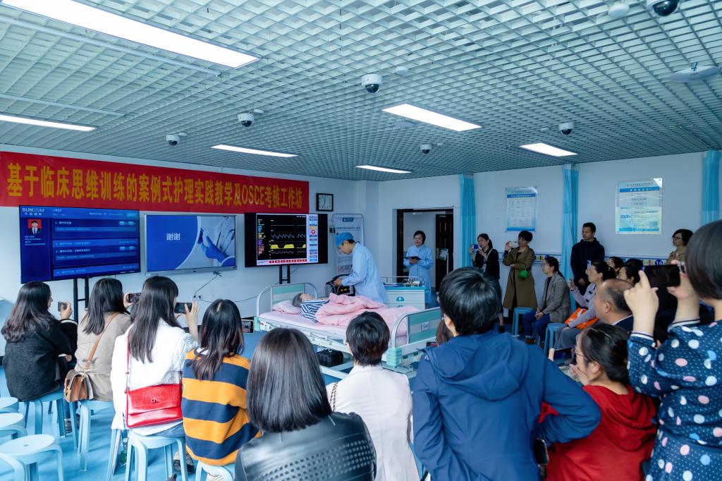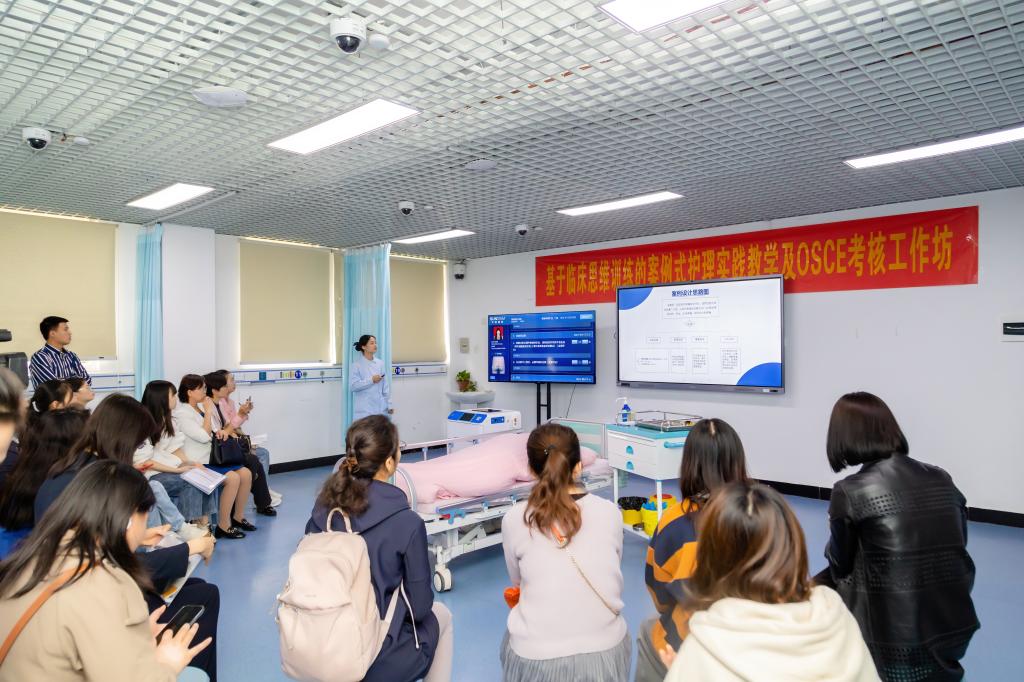 据悉,本次工作坊包括两个阶段,第一阶段是专家讲座,六位专家分别围绕中国大学生医学技术技能大赛护理学专业赛道总体设计思路、护理技术技能大赛促进教与学的思考、 以及实验教学中心的建设等主题进行了专题报告;第二阶段为基于临床思维训练的案例演示及OSCE考核,通过模拟心血管内科、社区慢病门诊、妇科病房、急诊科四个临床场景,进行案例教学演示,最后由四位专家点评。