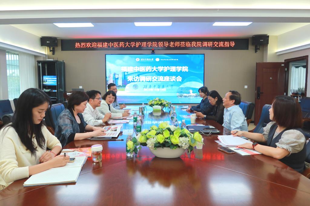2023年10月19日下午,福建中医药大学护理学院党委书记陈兆华一行4人莅临我院交流。交流会在学院会议室举行,我院罗尧岳书记、陈偶英院长,蒋小剑副院长,科教科、办公室负责人参会,会议由罗尧岳主持。