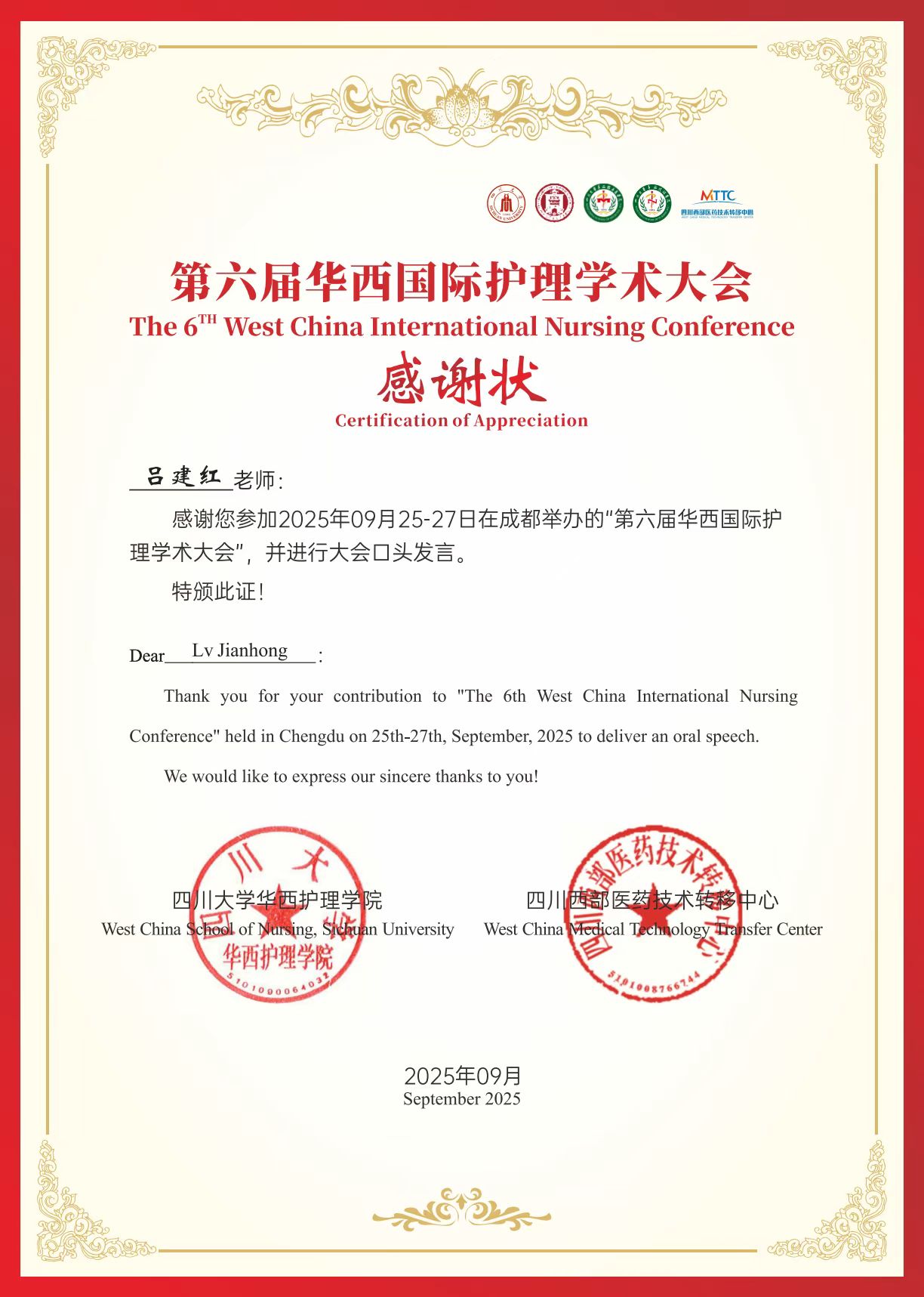 世纪华西,百年护理!时值华西护理110年华诞,四川大学华西临床医学院护理学院于2025年9月25-28日在四川成都成功举办第六届华西国际护理学术大会。作为国际护理领域的重要学术交流平台,本次大会以“智领护理 学科融合 赋能健康”为主题,论道学科发展、聚焦护理前沿,勠力同心促人类健康。本次大会吸引了来自英国、美国、澳大利亚、新加坡、芬兰、西班牙、沙特阿拉伯、日本、新西兰等全球10余个国家及中国港澳地区的400余所医学/护理院校与医疗机构的专家学者。