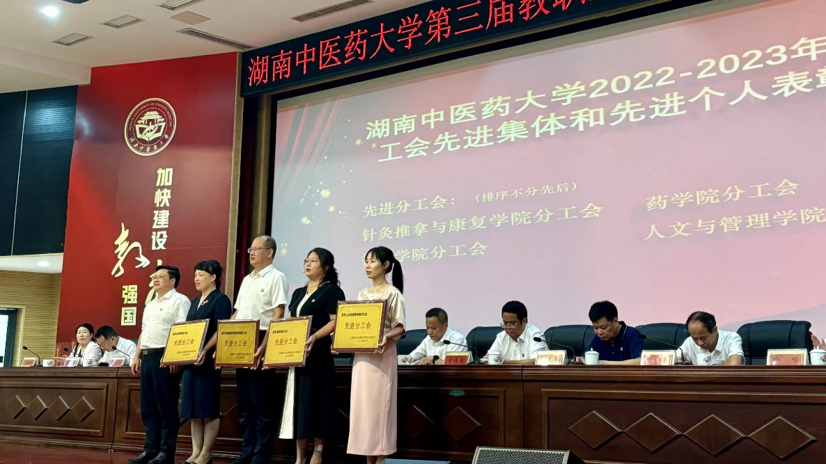 “先进分工会”组织受到表彰。这是我院分工会继2021--2022年度获得大学先进分工会集体以来,再次荣获的殊荣;是全院教职工努力和奋斗的成果,也是对全体教职工辛勤工作的肯定和嘉奖。学院分工会将进一步发挥群众组织优势和特色,不断创新工作思路和方法,更好地为教职工做好服务,争创湖南省教育系统模范教职工小家,迈上新的台阶。