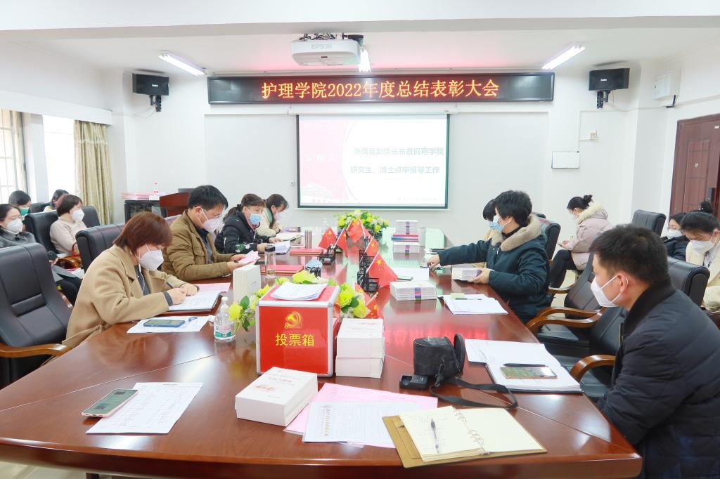 首先,领导班子成员、各教研室、部门负责人,围绕大学二级目标管理任务完成情况、教研室建设、课程建设、教学工作、科研工作、获奖情况、继续教育、博士点申报、本科、研究生的学生工作、护理学虚拟仿真实验室建设、外事和行政、工会等方面对2022年的工作进行了总结,并对2023年工作计划进行了汇报和部署。汇报内容以数据为支撑,以事实为依据,图文并茂,充分展示了各部门在2022年取得的成绩。