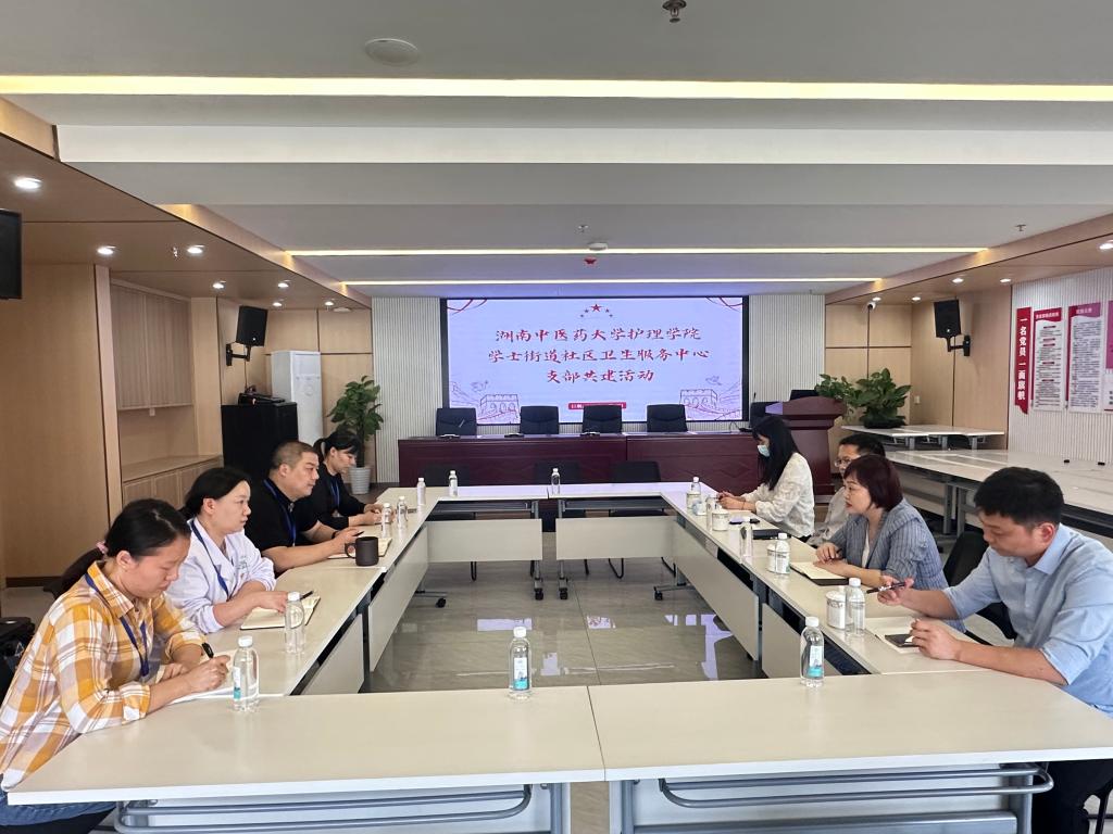 座谈会上,学院党委书记蒋小剑、岳麓区学士街道社区卫生服务中心党支部书记吴磊分别介绍了双方的基本情况及党建工作情况,并就组织建设、社会实践、志愿服务等内容进行了交流讨论。蒋小剑书记指出,本次党建共建活动具有深远的意义,期望通过与学士街道党支部的合作,进一步推动中医药文化深入社区、加强社区慢性病管理以及促进学生社区实践等方面的工作,促进党建与业务工作的相互促进和深度融合,实现“党建共建、资源共享、人才共育”的目标。