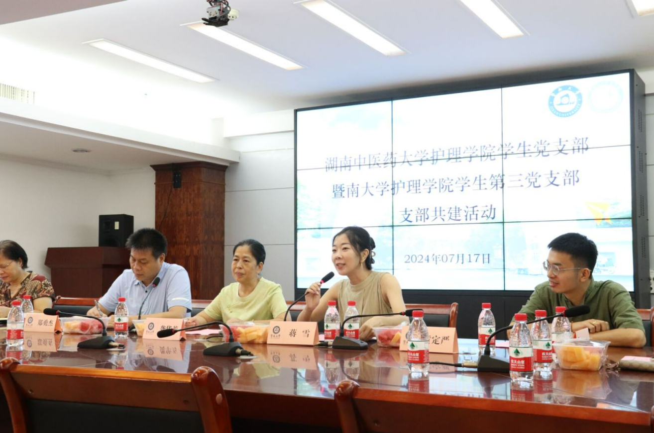 为深入贯彻习近平新时代中国特色社会主义思想,提升学生党支部建设工作水平,2024年7月17日我院第四学生党支部与暨南大学护理学院第三学生党支部开展党支部共建座谈会,本次座谈会在暨南大学护理学院会议室举行。