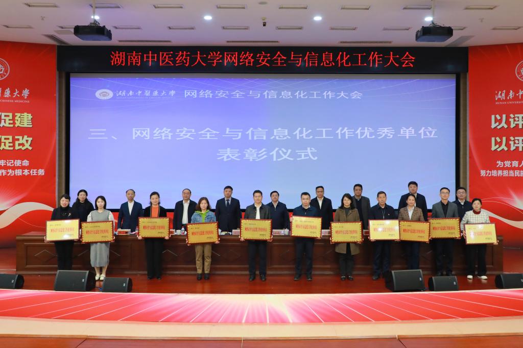 11月23日上午,我校网络安全与信息化工作大会在三号教学楼学术报告厅召开,校党委书记戴爱国讲话,校长易刚强作大会报告,校党委副书记汤文胜宣读了(校行网信字〔2023〕2号)《关于表彰网络安全与信息化工作优秀单位的决定》,授予了护理学院等11个单位为“网络安全与信息化工作优秀单位”。我院在家领导均出席了本次会议,陈偶英院长上台领奖,党委副书记吴湘,作为优秀单位代表在大会上作了发言,对此项工作进行了交流和分享。