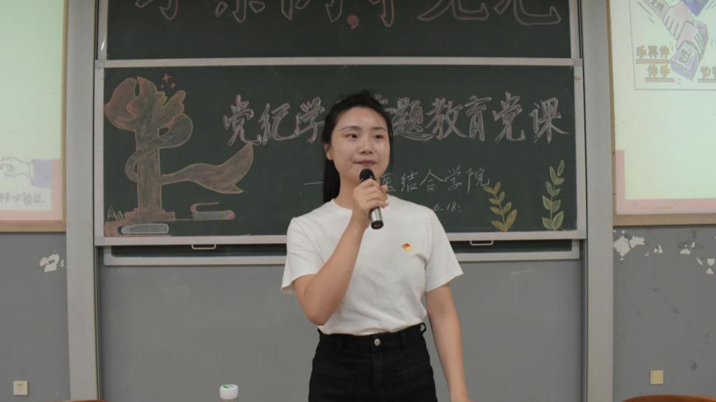 张国民书记结合中国共产党发展历程,深入阐述了中国共产党的纪律严明,阐明了青年师生应如何更好地认识党纪这一问题,并通过案例分析综合介绍了何为纪律性、为何需要纪律及纪律底线的不可触碰性,向中西医结合学院师生党员、入党积极分子分享了自己关于《中国共产党纪律处分条例》的学习收获。
