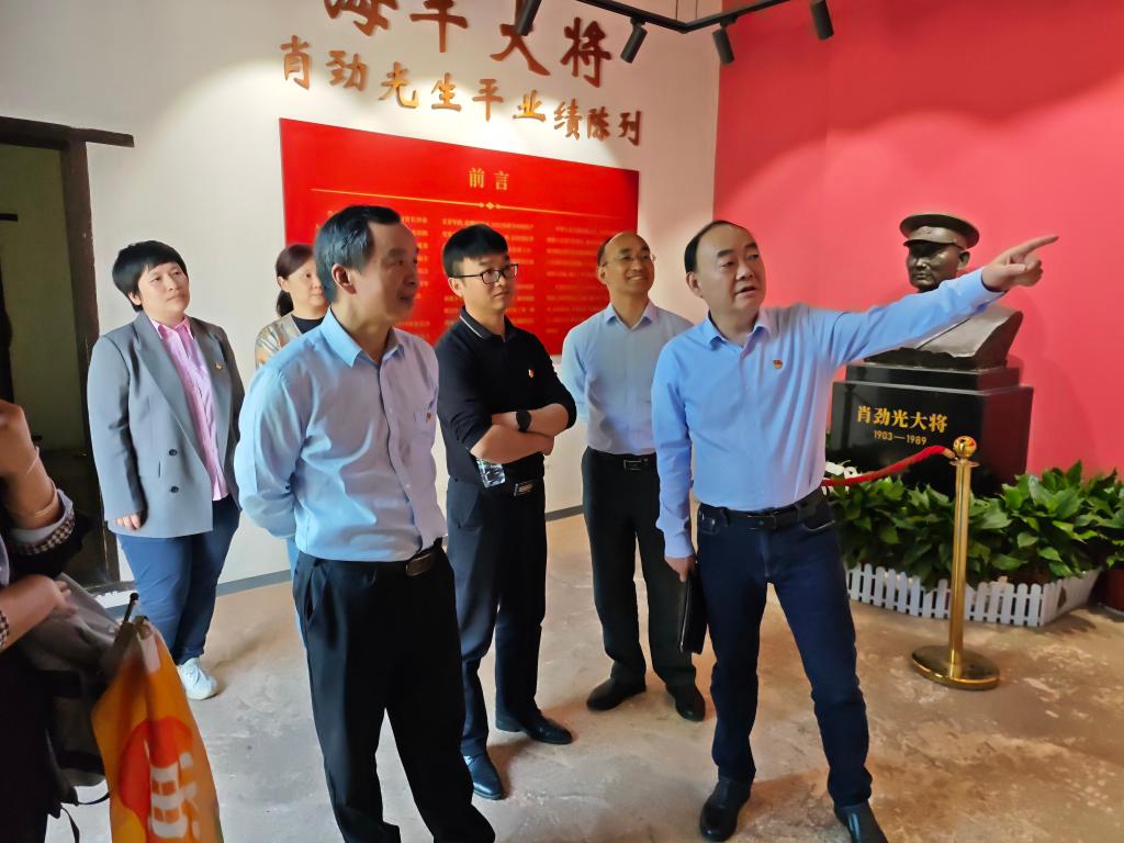 在肖劲光故居,全体党员重温入党誓词,铿锵有力的宣誓声回荡在广场上空,激励大家牢记初心使命,坚定理想信念。同时,大家通过深入学习肖劲光同志的生平事迹与革命奋斗历程,全面了解了他为中国人民海军建设事业所作出的卓越贡献。