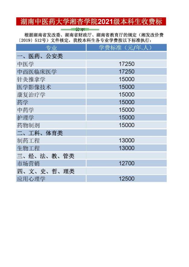 2021级半岛手机版官网登录 、湘杏学院学生收费公示