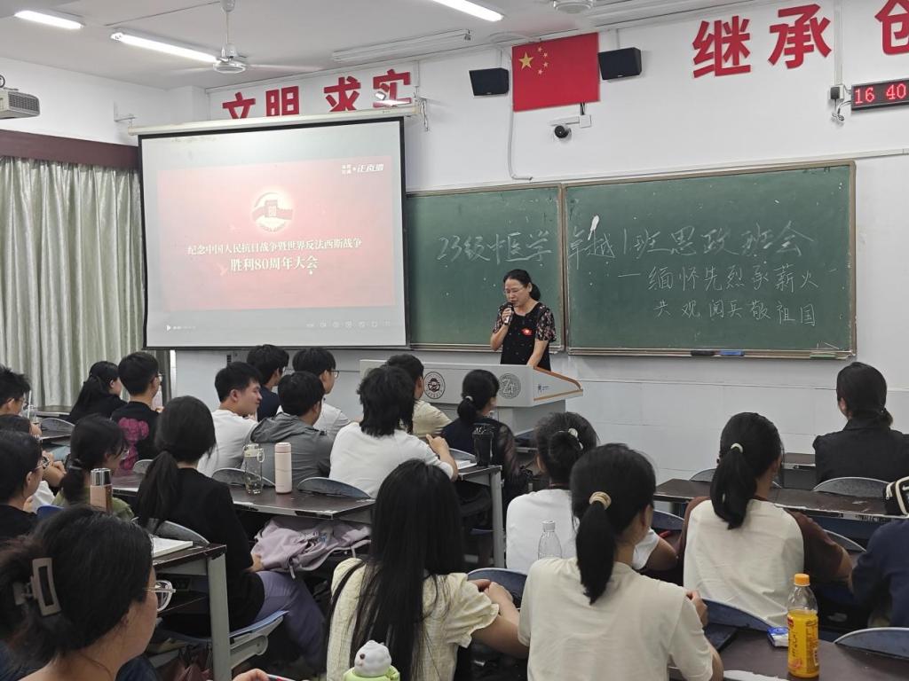 为纪念中国人民抗日战争胜利,弘扬伟大的抗战精神,9月3日,我校2023级中医学(5+3一体化)卓越1班举办了主题为“缅怀先烈承薪火,共观阅兵敬祖国”的思政班会活动。本次班会旨在通过观看纪念中国人民抗日战争暨世界反法西斯战争胜利80周年大会,增强学生...