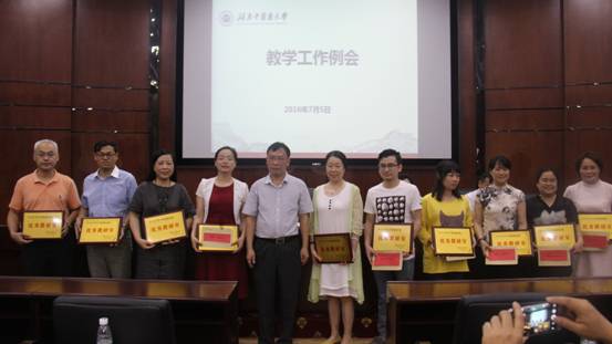 7月5日下午,学校召开教学工作例会,对本学期教学工作进行表彰,会议由大学副校长何清湖主持,各学院教学院长、科教科长,各非直属附属医院教学院长、科教科长、教务处科级以上干部及获奖个人和单位代表参加会议。