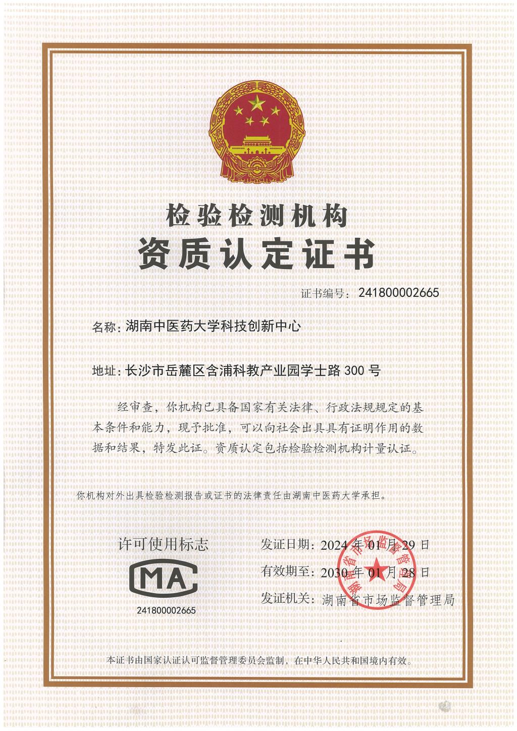 科技创新中心顺利通过湖南省CMA资质认定