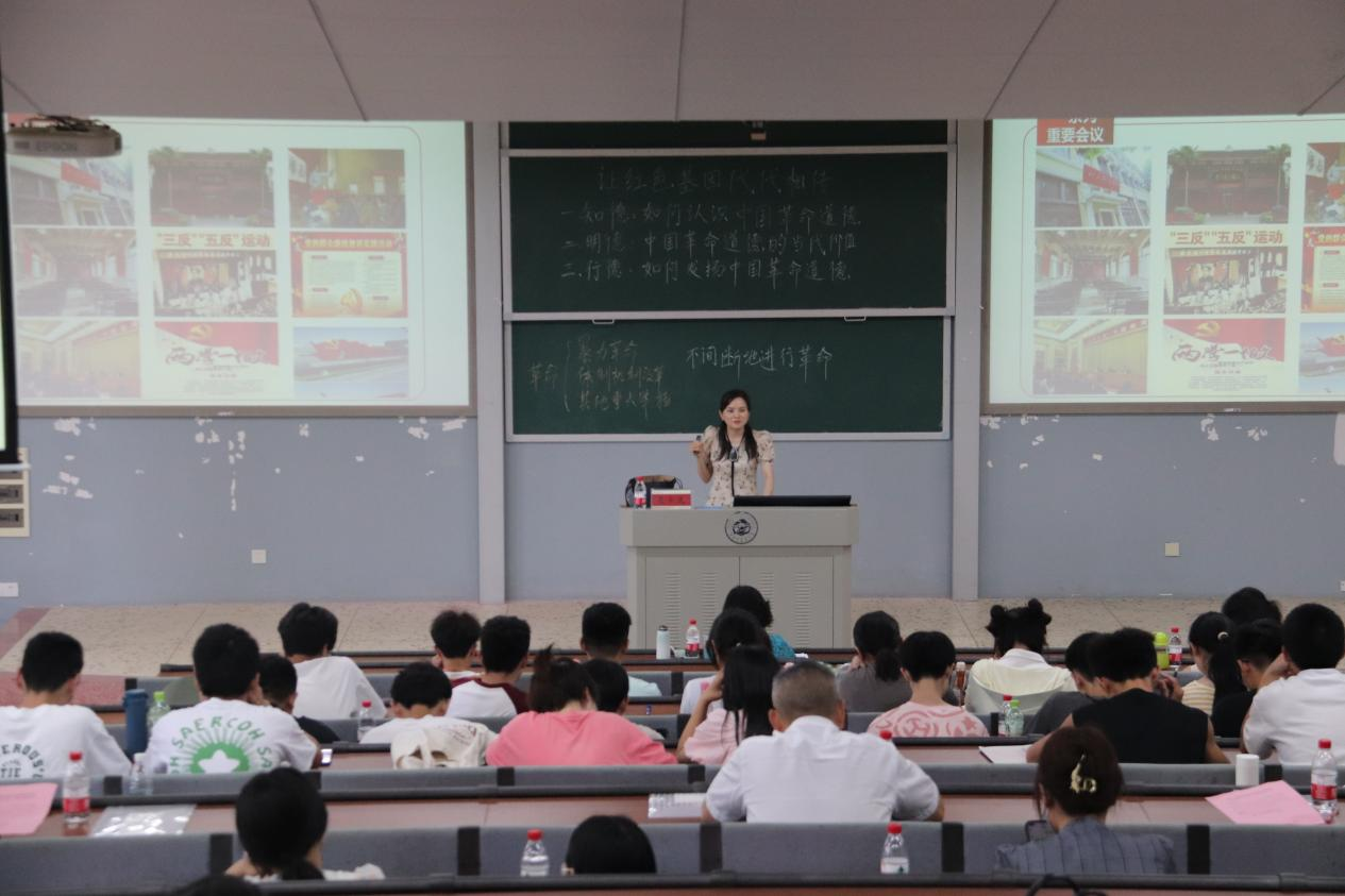 如何让红色基因代代相传?5月18日下午,《思想道德与法治》开放式课堂——《如何让红色基因代代相传?》在第三教学楼3217教室举行。本次开放式课堂由半岛手机版官网登录 马克思主义学院肖卜文副教授主讲、由湖南省高校思想政治理论课第二届教学指导委员会成员叶利军教授主持交流研讨环节。