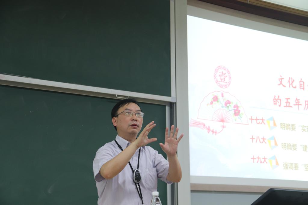 二是切实发挥思想政治理论课的主渠道作用,深入做好习近平新时代中国特色社会主义思想“进课堂”工作。校(院)党委书记秦裕辉为150余名本科生讲授形势与政策课,做全国两会精神专题辅导报告;副校长何清湖为300余名本科生讲授形势与政策课,做“文化自信与中华优秀传统文化的当代价值”专题辅导报告。学院开展专题教研活动1次,深入学习贯彻习近平总书记在北京大学师生座谈会上的讲话和在纪念马克思诞辰200周年大会上的讲话。开展新教材集体备课2次,全面研讨如何将习近平新时代中国特色社会主义思想贯彻落实到课堂教学当中。