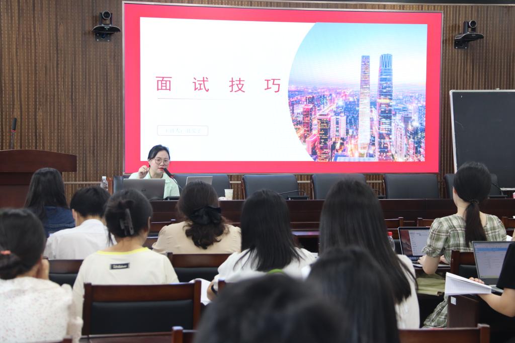 举办求职指导专题讲座,多措护航就业路。为进一步提升我院研究生求职面试能力,学院在6月19日下午,特别组织了公务员结构化面试培训讲座。讲座由学院副院长黄汀教授主持,学院青年教师、湘潭大学马克思主义理论专业在读博士聂莹子老师主讲。聂老师分析了马克思主义理论专业的就业形势,提醒同学们要在求职之前找到自己的兴趣点,明确自身职业规划。她还结合自己近几年在就业培训中遇到的真实案例和历年面试真题,从心态、礼仪着装、结构化面试题型、素材积累四个方面进行了详细讲解。最后,聂老师鼓励毕业生要把握好应届生身份,把握当下,及时关注相关招考信息,以积极认真的态度准备考试。