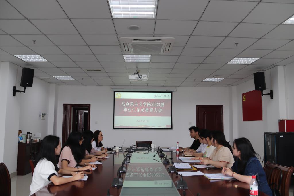 开展毕业生党员教育,坚守信仰担使命。会议旨在加强毕业生党员教育,重点做好党员组织关系转移教育,提高毕业生党员意识。这一阶段由马克思主义学院研究生党支部书记李雪晶老师主持,全体毕业生党员参加。李老师组织毕业生党员重温入党誓词,对毕业生党员进行了一次庄严、生动的党的观念教育。她强调,毕业生党员是千千万万党员中的一份子,在人生的重要节点,希望大家始终心怀“国之大者”,保持一往无前的奋斗姿态,成为实现中华民族伟大复兴、构建人类命运共同体的生力军,成为心中有梦、眼中有光、手中有活、脚下有力、肩上有责的时代新人,在青春的赛道上争取跑出当代青年的最好成绩,在民族复兴的伟大征程中实现人生理想。