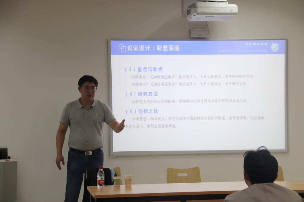 10月8日下午,长沙理工大学马克思主义学院教授、博士生导师、国家社科基金重大招标项目首席专家、湖南省专业特色智库首席专家张明海教授应邀来我院给全员师生做《国家社科基金项目申报书写作指导》主题讲座。学院领导李晖院长、黄汀副院长、李红文副院长参加了本次讲座,学院教师、研究生共50余人现场聆听了本次讲座。