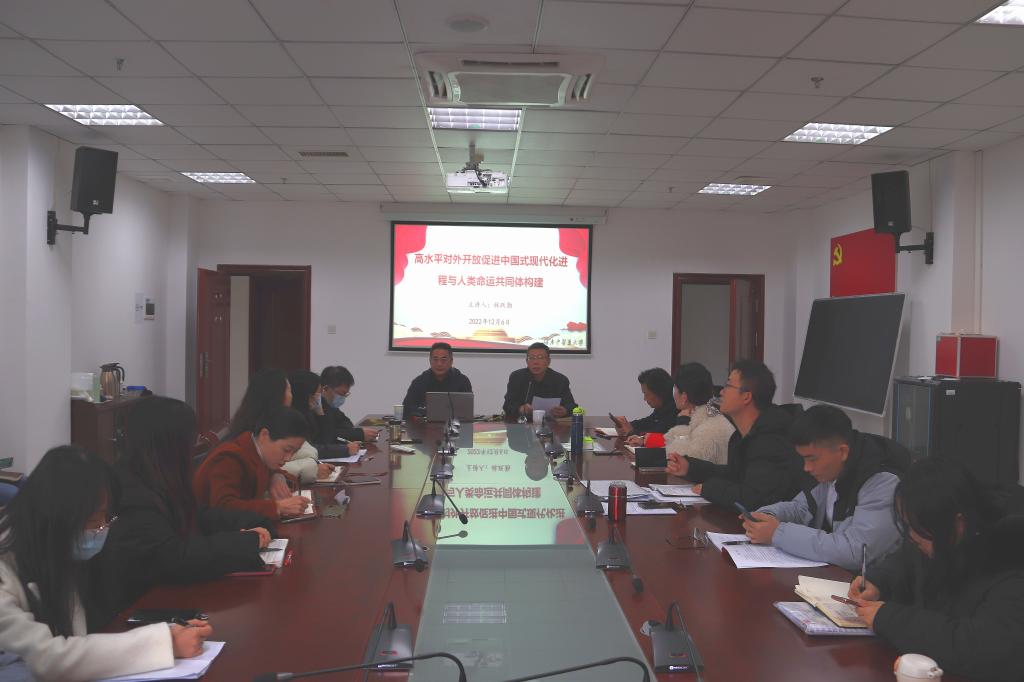 为深入学习宣传贯彻党的二十大精神,12月6日下午,马克思主义学院邀请中国科学院大学政府管理学院林跃勤教授作题为“高水平对外开放促进中国式现代化进程与人类命运共同体建构”的专题讲座。讲座在第三教学楼904会议室举行,由李晖院长主持,学院全体教师、研究生共同参加。