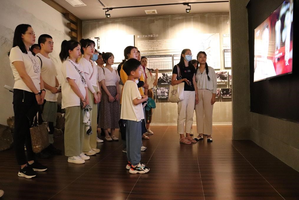 上午10时左右,两院师生一行到达了影珠山抗战陈列馆。在陈列馆中,讲解员详细为大家讲述了八十余年前发生在这片土地上的英雄事迹。在1939年至1942年的三次长沙保卫战中,以第三次战争最为惨烈,中国军民同仇敌忾、勇猛诛寇,于影珠山阵地重创曾参与南京大屠杀的日军第6师团第23联队及第40辎重联队,全歼独立第九混成旅团的精锐部队,以血肉之躯书写了“倭寇未曾留片甲,英雄据此障长沙”的英雄篇章和壮烈功绩。这段历史壮怀激烈、引人深思,使聆听讲解的全体师生陷入沉思。