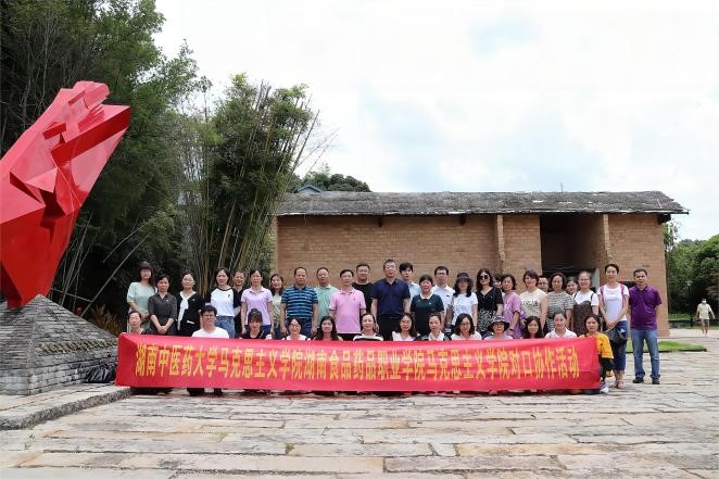 2022年7月1日,在建党101周年之际,半岛手机版官网登录 马克思主义学院与湖南食品药品职业学院马克思主义学院两院师生共同开展了党建与工会活动。活动分为上午、下午两场,上午的党建活动在长沙县影珠山抗战陈列馆和陈树湘故居进行,下午的工会活动在湘丰茶博园开展。