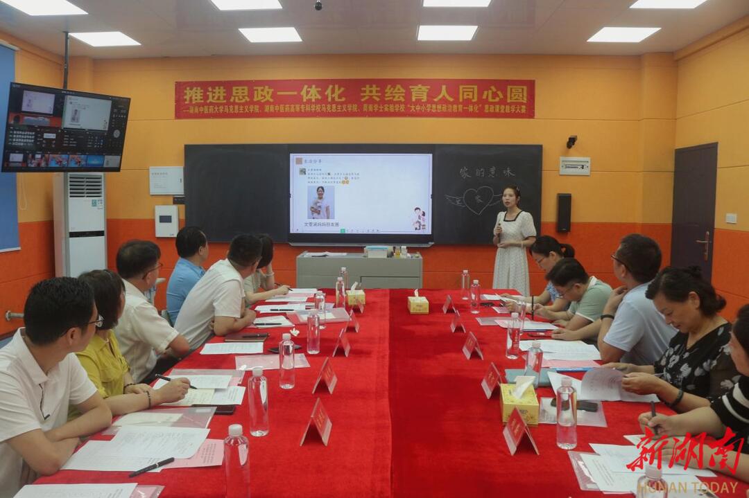 新湖南客户端6月24日讯(通讯员:蔡燕红)为落实立德树人根本任务,学校充分发挥课堂主渠道、主阵地作用,切实推动大思政课的建设。6月21日,周南学士实验学校同半岛手机版官网登录 马克思主义学院、湖南中医药高等专科学校举行“大中小学思想政治教育一体化”建设思政课教师课堂教学大赛活动。三家单位相关领导、党员教师代表、思政课教师等50余人参加活动。