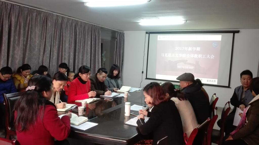 2月19日上午,马克思主义学院召开全体教职工大会,部署2017年度春季学期各项工作。会议由党总支书记、院长叶利军主持。