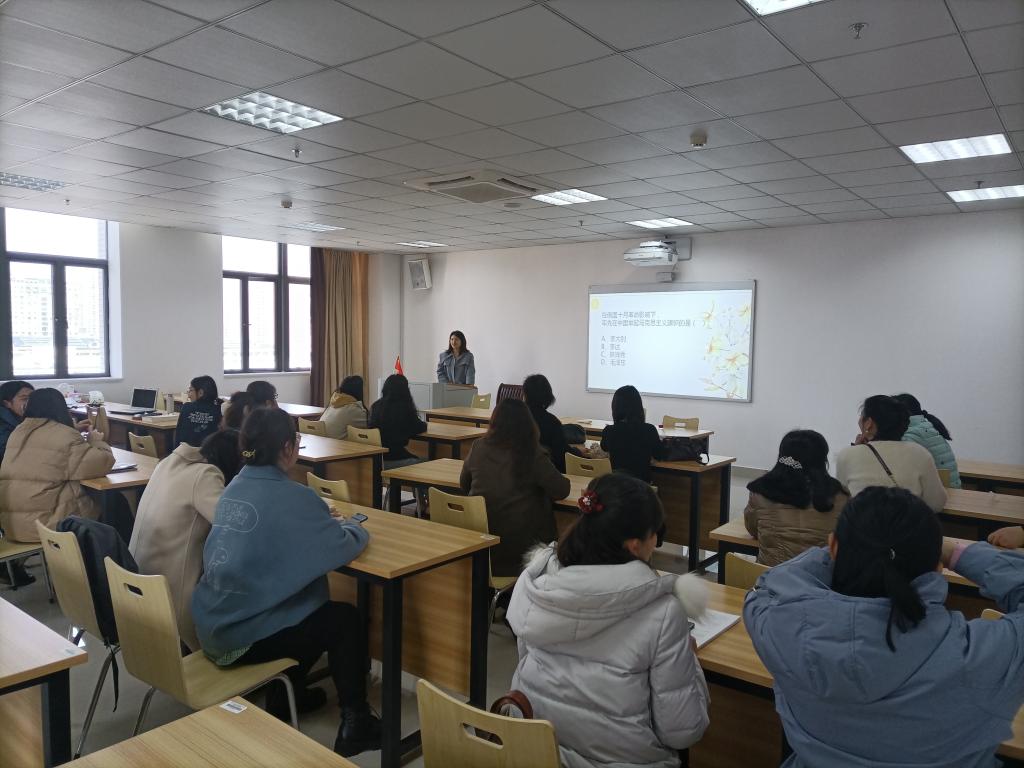 为庆祝“三八”国际劳动妇女节,庆祝中国共产党成立100周年,回顾党的光辉历程,激发教职工职工爱党爱国热情,3月12日中午,我院在三号教学楼马院会议室举办“学党史守初心巾帼建功展风采”党史知识竞赛,马院全体女师生参加了这一活动。