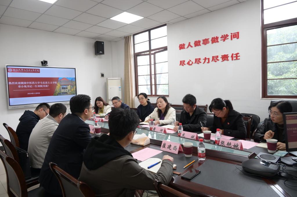 2024年11月7日至8日,学院党委书记章小纯一行前往西南大学马克思主义学院、重庆大学马克思主义学院、重庆中医药学院马克思主义学院调研。