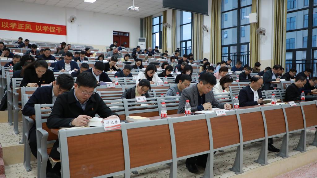 4月27日下午,我校学习贯彻习近平新时代中国特色社会主义思想主题教育读书班第二讲专题辅导报告在第三教学楼3417教室举行。全体在家校领导、副处级及以上干部参加学习。